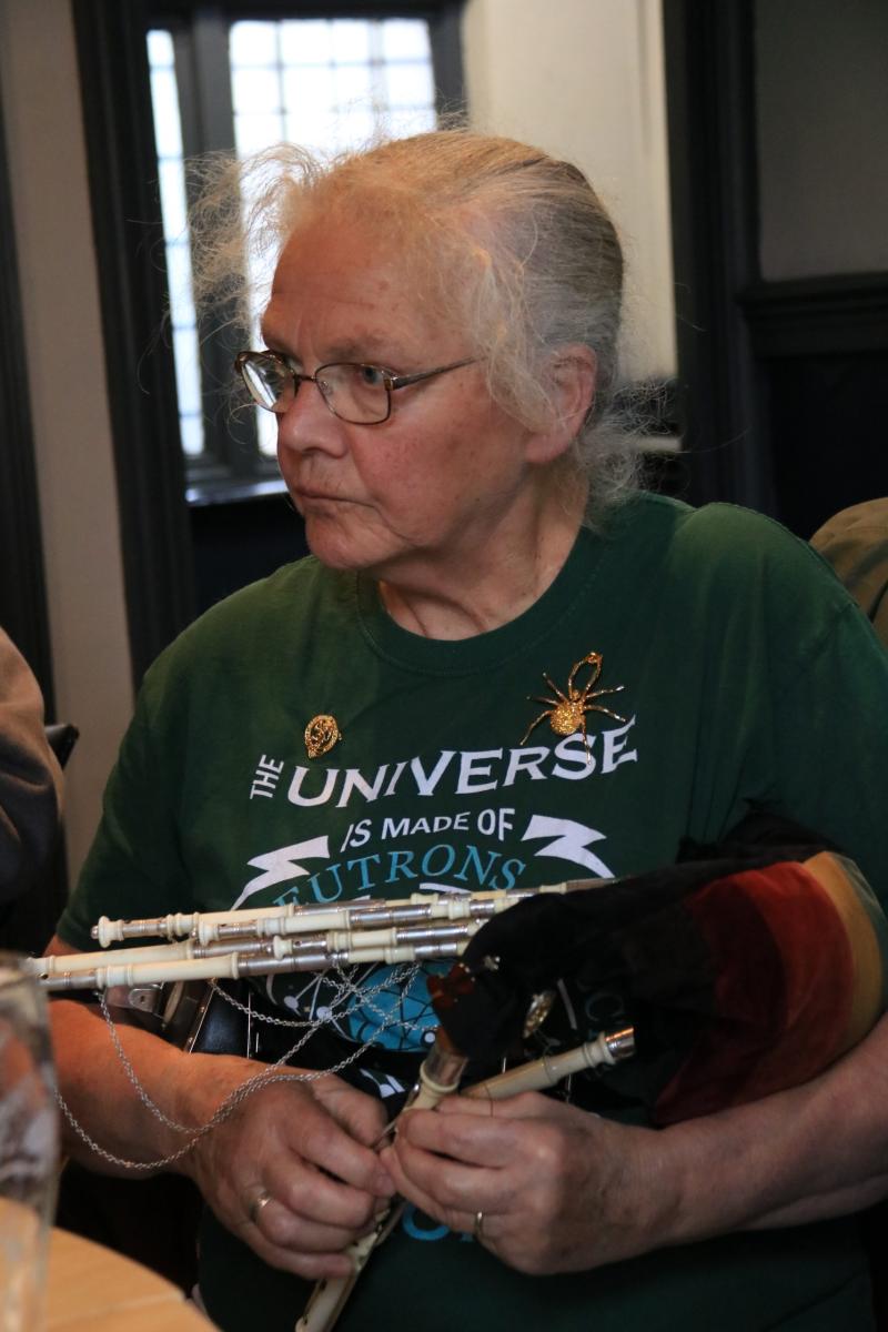 In spite of this healthy state of affairs, attendance at the monthly meetings was falling off badly. It was felt that this was due to the coldness of the present quarters, with no facilities for providing refreshments. Meetings were held temporarily at the Friends Meeting House in Jesmond. Since 1969, the Society had been cooperating with the Newcastle Festival Committee. The ordinary meeting in October coincides with this event and is made an Open House day, when anyone interested in the pipes is welcomed. Usually a concert is arranged in the Guildhall, and one year the Lord Mayor asked for an official piper for the occasion. G. Atkinson, one of our best players, carried out this duty.